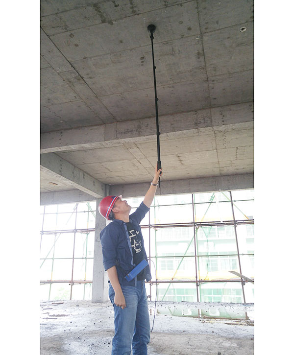 上饶市职业中学宿舍楼D楼建设项目位于上饶市信州区志敏大道,由上饶市信州区区委区政府筹资兴建,为现浇筑框架结构。根据结构的特点,公司采用回弹法检测混凝土强度、采用扫描法检测钢筋保护层厚度和楼板厚度。